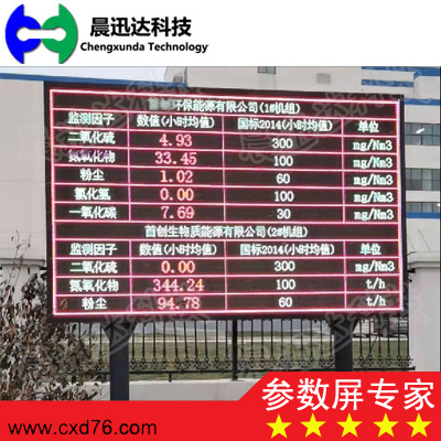 公司設計生產的工業參數顯示器(也稱:LED大屏、LED參數屏、工業參數屏、工業大屏、工業參數顯示屏、工業參數大屏幕,工業參數顯示板,工業參數看板,工業參數電子屏,上件參數看板、環保參數看板,環保信息顯示屏、連鑄大屏、連鑄LED屏、廢鋼參數屏、電力參數屏、中控參數屏、電力參數LED大屏)用于控制室、車間、監控室、戶外環保參數展示等場合,用于顯示電量、功率、頻率、溫度、濕度、壓力、液位、流量、轉速等各種工業參數的瞬時量、累計量。顯示采用大型數碼管、單雙色點陣LED屏、或全彩LED屏,以及各種尺寸工業LCD屏的方式,顯示方式靈活、清晰、醒目、直觀、性能穩定可靠、功耗低、壽命長。